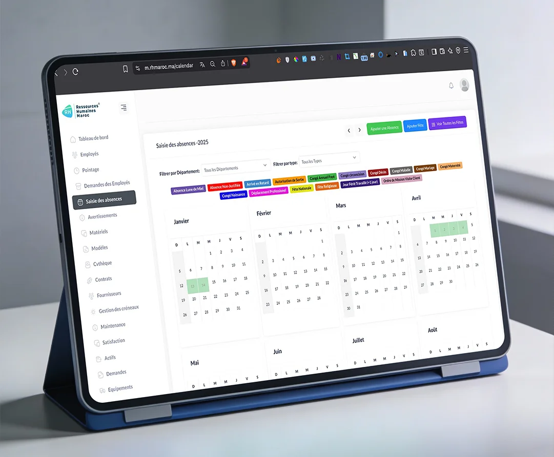 Gestion souple des absences, calcul automatique des droits, validation par N+1 et calendrier de présence en temps réel.